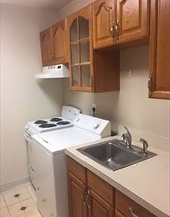 Garden-level apartment with large living area and dining alcove, washer in unit. Heat, hot water and parking included! Built-in air conditioner. Easy access to MassPike, 70 bus to Central Sq. and 86 bus to HBS, Harvard and Cleveland Circle. Sorry, no pets. Video available.