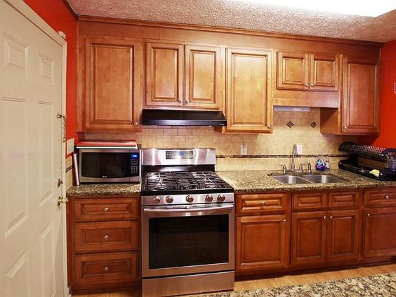 - Kitchen Features: Breakfast Bar, Cabinets Stain, View to Family Room, Stone Counters