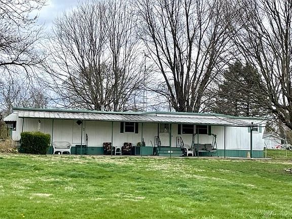 Nice mobile home on corner lot. Split floor plan featuring 2 bedroom and 2 baths. Open great room with electric fireplace and eat in kitchen. Large covered front porch. Detached 2 car garage and shed. Invisible fence, components belong to the tenant. Kitchen refrigerator does not convey (tenant property), refrigerator in the garage stays.
