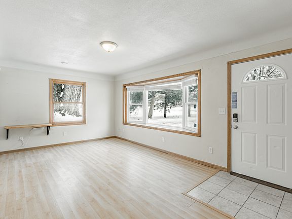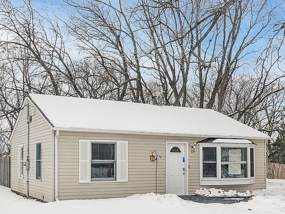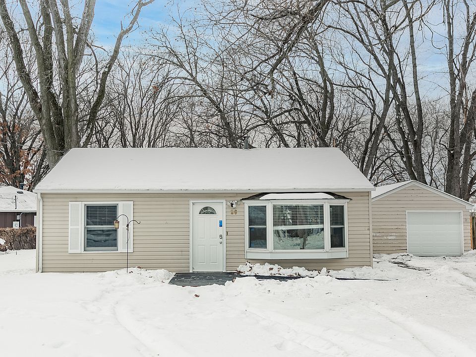 2 bedroom, 1 bathroom, rambler on slab home located in Circle Pines featuring a big bay living room window, fenced in backyard for privacy, 1.5 car detached garage, corner lot located on a cul de sac and more!