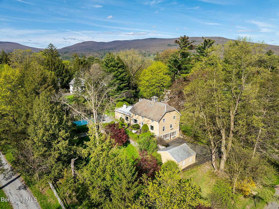 Nestled in-town with a picturesque westward view, this residence holds a rich history as part of the Bascom Estate, originally a barn before transforming into a charming home. Enhanced by mature landscaping, the grounds feature a swimming pool and a two-car garage. Inside, discover an eat-in kitchen, a dining room, and a living room with a wood-burning fireplace. A cozy family room boasts a gas fireplace, while four bedrooms and two and a half baths offer ample accommodation. The lower level hosts a finished office space, bathed in natural light through expansive windows, providing a tranquil workspace. Just steps to the Williams College campus and close to all Williamstown has to offer.