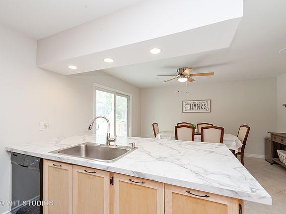 Private End Unit Backing To Wooded Area. Recently remodeled kitchen with BRAND new counters, backsplash & recessed lights/fan which is very large and includes a breakfast bar for extra seating & entertaining and ample table space for your kitchen/dining table & chairs.Most of the home has been freshly painted in the latest shade of grey.3 bedrooms in all & the master is extra large for any furnishings you desire. Main upstairs bath was completely remodeled in 2019 with dual sinks, glass tile tub surround, vanity & maintenence free flooring. Additionally the 2nd & 3rd bedroom also have the latest maintenece free flooring & ceiling fans.The lower level has a custom built dry bar & lounge area to enjoy with your guests.Laundry Room is on this same level with much space for storage & a utility sink for those messy clean ups or dog baths. Bright Oaks has much to offer with near by walking paths & nature preserves, & resident outdoor pool, playground & clubhouse. In walking distance to multiple grocery stores, local restaurants & post office. The Association just installed the New Roofing & Siding 2 Years Ago. Cary is known for its highly rated schools & easy access to the Metra train station.The downtown area is quaint and home to many local restaurants & businesses. One Year Home Owners Warranty Offered. This one will go fast!