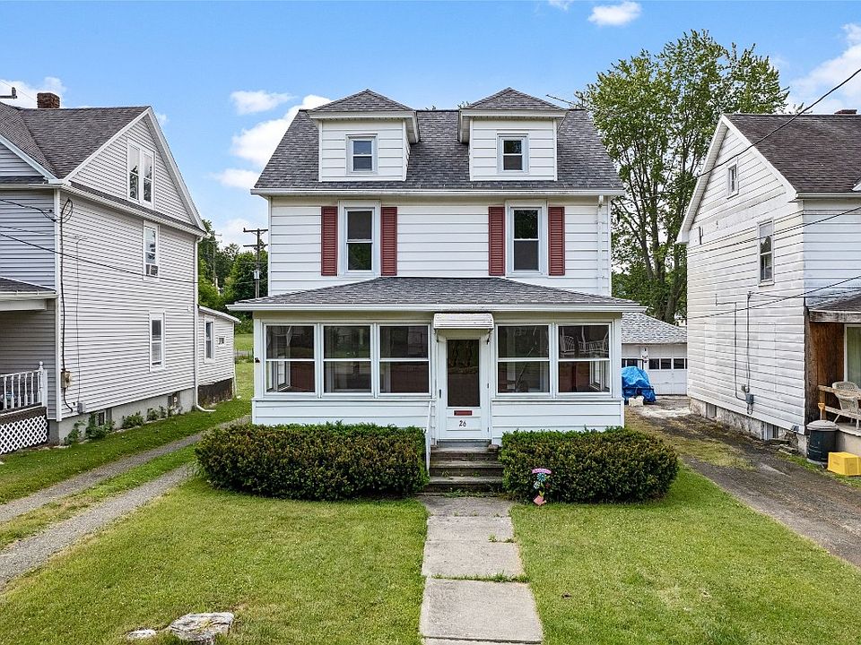 Move in ready home in a quiet neighborhood. Updated bathrooms, nice enclosed porch, first floor laundry, large 3rd floor bedroom, oversized garage and additional space in the lower level. The spacious yard backs right up to Fairview park.