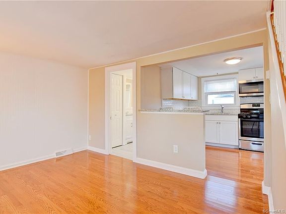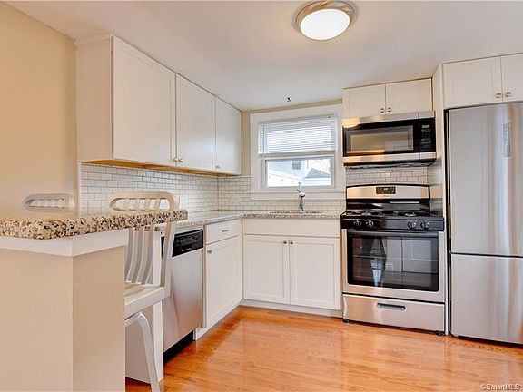 Antique charm meets modern convenience in this semi-detached beach cottage. This cozy home feels bright and airy thanks to plenty of windows on both floors. This property is fully updated with all new stainless steel kitchen appliances and cabinets in the redone kitchen featuring granite counters, bar area with chairs, and a dishwasher. A private, fully fenced grassy back yard with hose hookup is perfect for pet owners or gardeners. A private basement area includes a washer, dryer, and storage space. This home also features central air, off-street parking spot, hardwood floors, ceramic tile, and plenty of closets including a large bathroom linen closet. Located 3 blocks from beautiful Fort Trumbull beach and a only one mile to both Silver Sands State Park and the Milford green/train station. See this unique home today!
