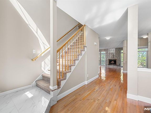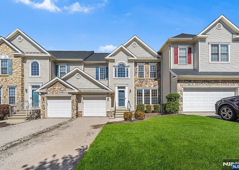 Welcome to Rolling Views, one of New Jersey's best kept secrets in Woodland Park. This beautiful townhome community offers serenity, manicured grounds, snow removal, a private pool and approx. 3000 sq. ft. of living space. Just 25 minutes from NYC with easy access to highways (80, 46, 3, Garden State Pkwy), endless shopping, dining, recreation and entertainment. This rare Preakness model is the 2nd largest floor plan, in a prime elevated location boasting breathtaking views. It features 4 bedrooms, 3.5 bathrooms, a newly paved 3-car driveway and a garage with epoxy flooring. Inside, you're greeted by a two-story foyer with retractable chandelier that opens to a captivating sun-filled space with hardwood floors, formal dining, sitting area, floor-to-ceiling windows, gas fireplace, den, powder room and a spacious kitchen with ample cabinetry and counter space. The newly stained walkout deck is perfect for outdoor grilling, admiring the sunset or gatherings. Upstairs, the spacious and airy primary suite has double-door entry, a generous closet, elevated views and an en suite bathroom with dual vanities, soaking tub and oversized walk-in closet. Two additional bedrooms and a full bath complete the level. The finished walk-out lower level provides flexibility adding a large fourth bedroom, full bath, laundry, storage/flex room, private patio, and a large family room ideal for guests. Don't miss this chance to own one of Rolling Views' finest homes--schedule your tour today!