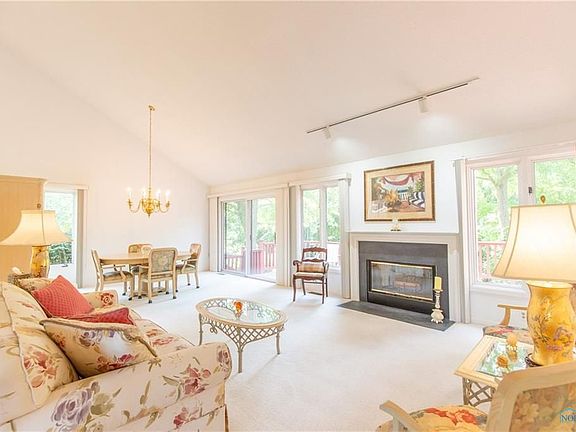 Quality built condo on private road overlooking ravine! Two-story living/dining room has fireplace and slider to deck. First floor master suite will accommodate all your furniture. Additional first floor bedroom could be den or office. Bright eat-in kitchen with walk-in pantry and hardwoods. Basement for storage. First floor laundry room. Second floor includes full bath, bedroom and attic storage.