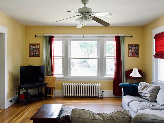 Charming Conimicut bungalow on a quiet street. Beautiful original floors and moldings, but all of the big updates have been done including heat, electrical, roof, windows, and siding. Main floor has large double parlor living/dining room, kitchen, bathroom, and 2 bedrooms. HUGE third bedroom upstairs. Laundry is located in the clean, dry basement. Both of the entryways have room for coat storage, plus an enclosed front porch. The long driveway allows for plenty of parking!