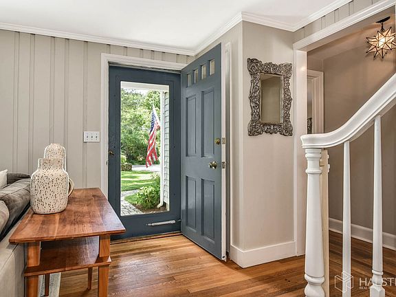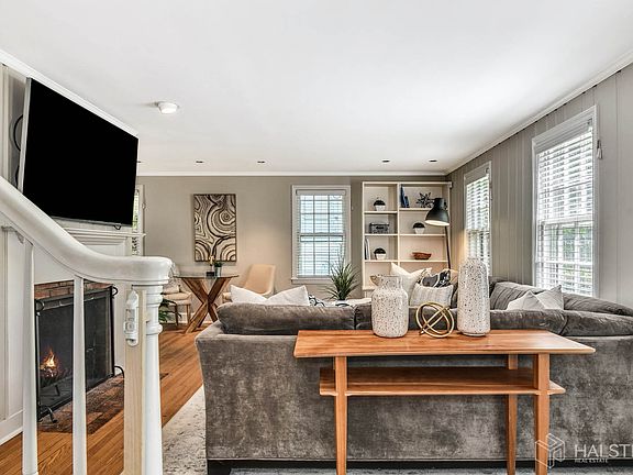 This charming home, located minutes from Main Street shopping and concerts at Levitt Pavilion, has everything one could want. Upon entering, you are greeted by a spacious living room with wood burning fireplace and coffee nook (or possible office space). The galley kitchen and ample dining room flows seamlessly to a fenced yard with plenty of room to entertain, a built-in grill, and pizza oven. 3 bedrooms (one on the first floor) and 2 updated full baths complete this charmer. The basement offers plenty of storage and a laundry area. Detached 1 car garage and shed. And BEST of all, enjoy kayaking or swimming from the private neighborhood dock at the end of the cul-de-sac!