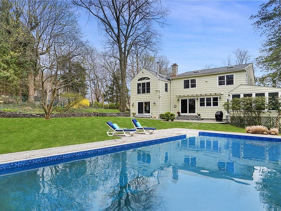 This sun-filled 5-bedroom home, nestled in the coveted Pine Hills neighborhood of Purchase, NY, is exactly what you've been waiting for! The ground floor features a spacious living room with a cozy fireplace and vaulted ceiling, a gourmet eat-in kitchen with a center island and a Tulikivi wood burning baking oven/fireplace, a formal dining room, a family room, a sunroom drenched in natural light, a laundry closet, and a powder room. Ground floor's expansive master bedroom includes ample closet space and a spa-like ensuite bathroom, while a guest bedroom and hall bathroom complete this level. Upstairs, three well-proportioned bedrooms, all adorned with large windows and skylights, a playroom and full bathroom. The finished walkout basement provides additional living space, ideal for a home office. The flat-level backyard is an entertainer's dream, featuring an in-ground swimming pool and a serene koi pond. Conveniently located just two miles from White Plains' downtown and train station. Free school bus service to Harrison public and private schools up to 15 miles away. Meticulously maintained, with freshly painted interiors and a new roof, this home is ready for you to unpack and settle right in. Additional Information: Amenities:Stall Shower,Storage,ParkingFeatures:1 Car Attached,