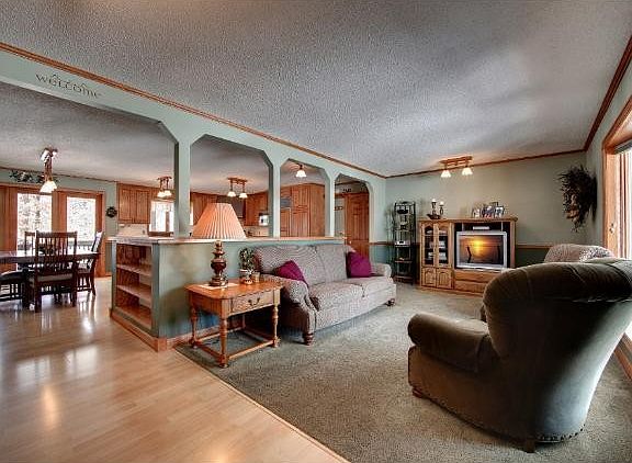 Wonderful open floor plan w/updated kitchen, stainless appls, hrdwd flrs, great master bdrm with huge walk-in closet & whirlpool tub. Enjoy activities on the covered deck overlooking the large fenced yard or for the garage guy there is a heated workshop