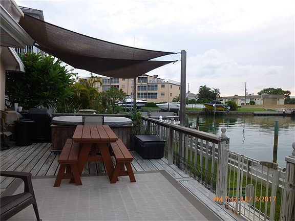 PANORAMIC SUNSET UNRAVEL THIS BEACH HOME WITH DOCK AND DAVITS, DEEP WATER AND JACUZZI, AND 58TH FEET OF WATERFRONT. WALK ONLY A BLOCK TO MAGNIFICENT TREASURE ISLAND BEACH, MINUTES TO DOWN TOWN TREASURE ISLAND AND RESTAURANTS AND ENTERTAINMENT AND CLOSE TO WORLD FAMOUS JOHN'S PASS. THIS TWO BEDROOM AND TWO BATH HOME HAS OPEN FLOOR PLAN WITH ONE CAR GARAGE AND JACUZZI.