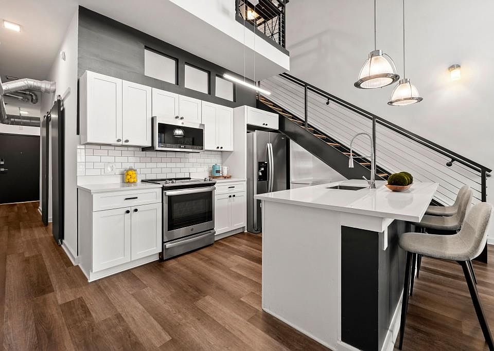 Welcome to your new updated and chic 2 bedroom, 2 bathroom apartment located in the desirable Atlantic Station area! As soon as you enter this industrial style loft, you'll be greeted by soaring 22' high ceilings and breathtaking floor-to-ceiling windows that flood the space with natural light. You'll love the modern touches throughout, including frameless shower doors, a free-standing soaking tub, and sleek quartz counters in the kitchen and bathrooms. All appliances are stainless steel, ensuring durability and style. This apartment is perfectly situated for those who love to shop, dine, and be entertained. Just steps away from the shops, restaurants, and movie theatre in Atlantic Station, you'll have everything you need at your fingertips. Don't miss your chance to live in this stunning, updated apartment in one of Atlanta's most sought-after neighborhoods!
