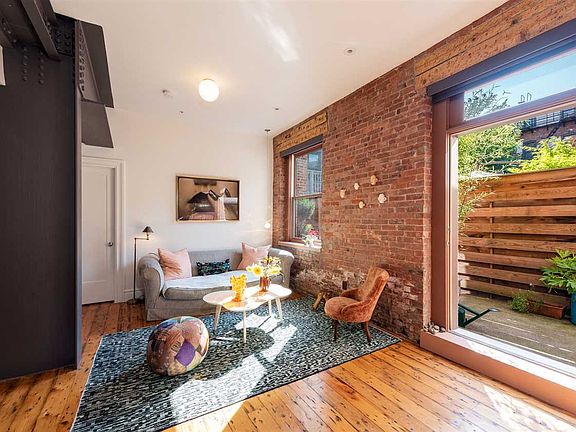 Situated in the Boniface Lofts, a recently converted condominium from a circa 1860s church building bearing Gothic architectural elements, this unique, spacious and stylish residence features 2 large bedrooms, 2 full bathrooms, abundant custom carpenter-built closets including a sizable walk-in, high ceilings, Artemide lighting and Starck & Bouroullec for Axor fixtures throughout, a luxurious Starck for Duravit bathtub, custom window shades, in-building storage space, a 343 sf private patio, Central AC and heating with a high speed and efficient HVAC system, in-unit laundry and a load of charm including original wide-plank wood floors, abundant brick walls and architectural columns and beams. The chef's kitchen boasts custom cabinetry with built-in drawers, under-cabinet lighting, Carrara marble countertops, subway brick-tile backsplash and stainless-steel appliances including a Viking refrigerator and Bertazzoni professional range. The magical private patio off the living room is a perfect place to unwind and entertain adorned with custom Pennoyer Newman planters and an incredible apple espalier. Beautiful natural light brightens the tranquil interior, and the quality of workmanship is evident on every surface. Ideally located just a few seconds away from Jersey City's most beloved restaurants, Newark Avenue Pedestrian plaza, Grove Street PATH station, markets, shops, parks and schools, yet peacefully tucked away amidst neighboring gardens, this distinctive and serene residence is not to be missed.