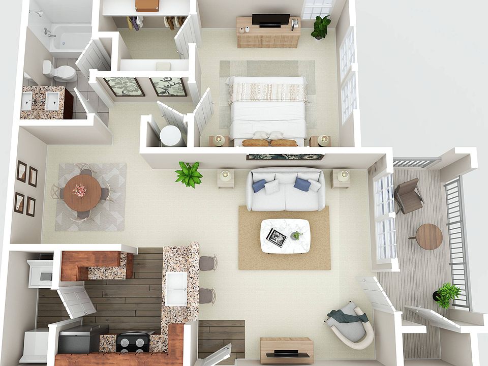 - Exterior features: Balconies/Patio with Storage Closets*, Barbecue, Business Center, Courtesy Officer, Game Room, Garages and Storage Available, Garden, Hardwood-Inspired Plank Flooring*, On-Site Maintenance, Pet Park, Professionally Landscaped Grounds, Soaring 9' Ceilings, TV Lounge