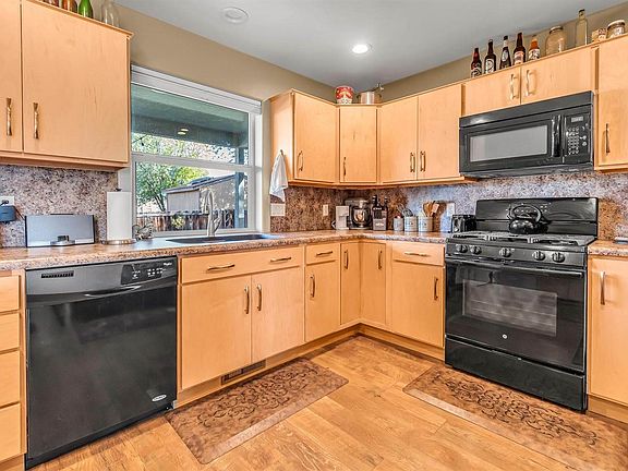 Very comfortable living on nicely landscaped .17 acre irrigated lot. 3 BR, 2 Bth, split bedroom design with laminate and carpet floorings, large kitchen with lots of counter and cabinet space, under counter sink plus an island and all appliances. Built-In dry bar with hanging glass organizers. A/C central air, all stucco exterior, nice landscaped yards with underground sprinkler system, raised garden beds and nice covered patio.