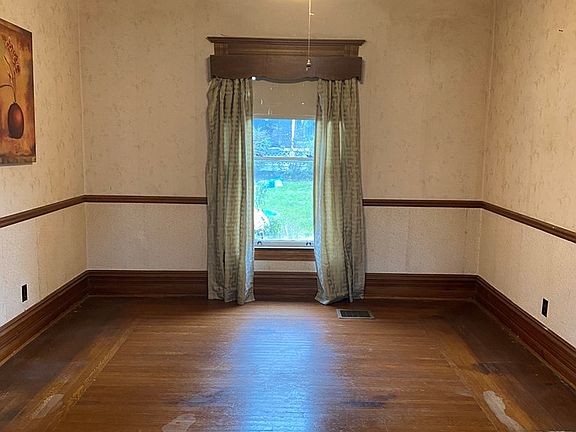 A place to hang your hat...inside the front door! Literally! Watch the parade and the world go by from your second floor balcony! Enjoy in town living with this spacious 4 bedroom, 1.5 bath home featuring gorgeous, original woodwork throughout. Wood pocket doors separate the dining room and living room. The 4 bedrooms and full bathroom are located on the second floor. A large and inviting front porch as well as an enclosed back porch. A detached garage is located behind the home. Comes with the refrigerator and oven/range. 200 Amp electric service. High speed cable and cell service available. Includes 2 window AC units. Home is being sold "As-Is."