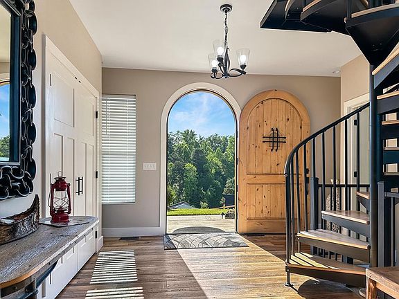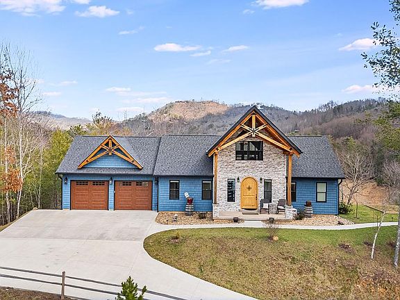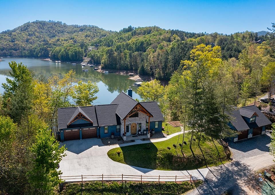 Tucked away in the Prestigious Fontana Lake Estates you'll enjoy spectacular views of the Lake from every window. Within, the residence is rich with comforts, beginning with the stunning entryway and majestic custom vaulted timber trusses. The ambiance is suffused with an abundance of natural light and 100-year-old barn wood floors. The kitchen is a delightful arrangement of inspiring counter space and major appliances. The primary bedroom, conveniently located on the main floor features an ensuite bath and ample closet space. Downstairs you will find a large built-in bar, two additional bedrooms, a full bath and living area which is currently serving double duty as rec room and TV room. As if this isn't enough in addition to the two-car attached garage there is an additional 1320 sq. ft. garage that is heated and cooled for all your workshop needs and toys. Great place to store your boat and jet skis during the winter months and not have to pay storage fees! Located above the garage is a 1BR/1BA mother in-law suite. This is great for additional guest or an Air BNB. Outside you can enjoy the covered 24x32 dock that includes a 60ft ramp and a cart path for easy access.