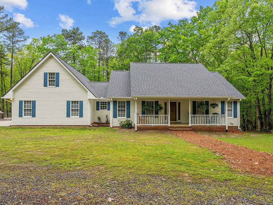 What a GEM! Custom built RANCH home on 6+ acres with a 1200sf detached garage/workshop with 10' doors. This meticulously maintained home features an open concept with hardwood floors, updated kitchen and spacious screened porch to enjoy this gorgeous property. Easy access to US1 and only 20 minutes drive to Apex with plenty of shopping. 5 minute drive to Raleigh Executive Jetport and 35 minute drive to RDU. Roof 2022. No HOA so bring your chickens and goats! 268 sf Office/Flex space, currently used as storage, finished without permit and included in total square footage.