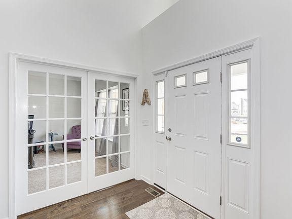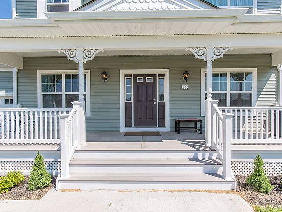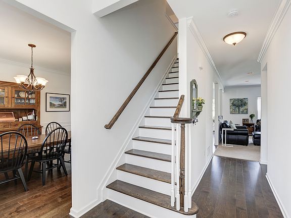 Location, Location, Location. This extremely young Colonial, sits on the one of the largest lots, and in the Cul De Sac of Hickory Pines. The home boast a front porch to enjoy the quite moments on. It offers 9 ft ceilings and recessed lights, decorative moldings, and custom farm board hardwood flooring. All the rooms are generous in sizes. Office on first floor, Center Island custom Maple Kitchen w granite counter tops and separate dining area. Sliders off Kitchen to your deck and oversize yard, which backs up to a farm land property. The Master bedroom has large walk in closet, upgraded Bathroom tiles, soaking tub and shower stall, The family bathroom has double sinks, Full Basement awaiting your finishing touches.