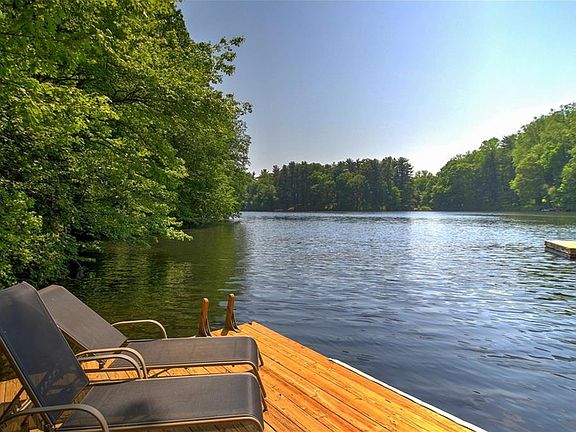 WATERFRONT and PRIVACY! This waterfront lake house is loaded with casual charm in a natural wood setting. It's just a short walk to your own deck & dock to sit at the water. Your own boathouse has a lift to make storing your 18' electric boat simple. (Boat remains with sale). Open floor plan w/ floor-to-ceiling windows which enhance the view of the lake from the living room & master bedroom. Expansive kitchen with ample cabinetry. Dining room w/hardwood floor. Master suite w/vaulted ceiling, gorgeous view of the lake, full bath & access to the solarium. Main level laundry. Finished lower level w/wet bar. Extensive decking for outside enjoyment. Beaver Dam Association fee $800/yr. Located a short distance from Route 8 & shopping.