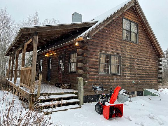 12601 - Very private beautiful log home sitting on 5.16-acre lot. Has a small pond with fruit trees. Interior boasts a large custom fieldstone chimney with woodstove in the living room. Cathedral ceilings with a large loft on the 2nd level. First floor has one-bedroom, full bath, kitchen, large dining area, and cozy living room overlooking a large wrap around deck. There is a nice porch for those warm summer nights. Full basement with one finished room with bull bath also. Come and see today.