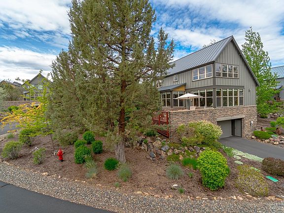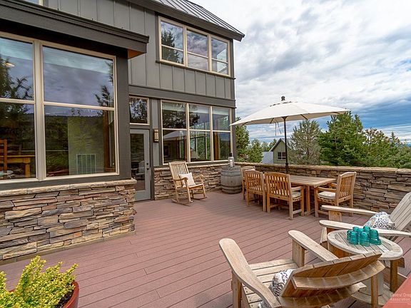 Sophisticated design meets High Desert beauty in sought-after Highland Parks! Rare location on the end of the street nestled next to a lush pocket park offers dramatic easterly views of Smith Rock, the city lights, & the Ochoco Mountains. Mountain foothill architectural design with extensive stonework base, expansive Trex deck, metal roof, extended two car garage with additional storage room, & passive solar orientation. Unique open floor plan boasts lofty ceilings, banks of windows, built-in media center, & sunken living area. Newly updated with beautiful hardwoods throughout, floor to ceiling stacked stone fireplace, slab quartz counters in kitchen with farmhouse sink, & porcelain backsplash. Stunning master bath remodel with extended tile walk-in shower, slab quartz counters, & basin sinks. Eagle Crest is home to three 18 hole golf courses, an 18 hole putting course, three sports centers, a spa, & miles of trails.