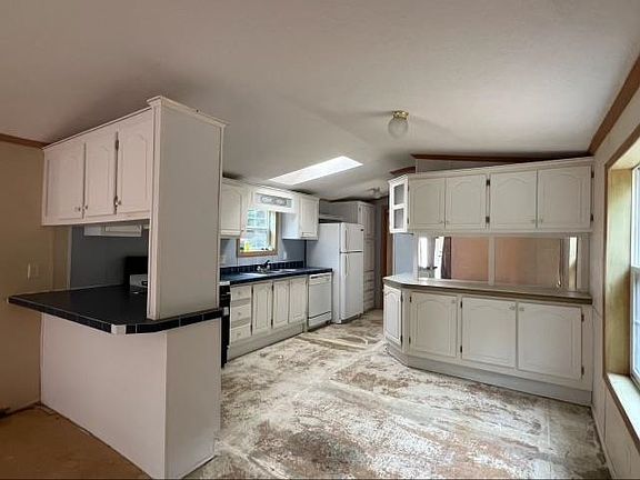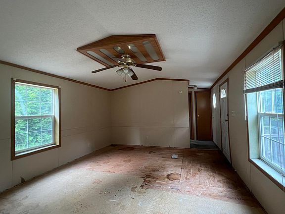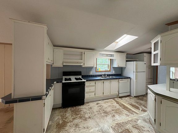 Two bedroom home on a 5 acre partially wooded lot with a long driveway. Home is not visible from the road, which makes for a private location. 3 Miles to town and all amenities. Open concept living. Eat-in kitchen with plenty of cabinets. Primary bedroom and bath on one end. Second bed and bath on other. In need of flooring. Easy to show.