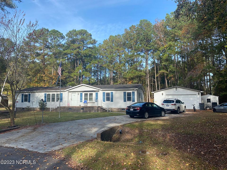 Beautiful Piece of Property located in the hidden away community of Ocean Forest in Calabash! Home (Double-wide) sits on one of the bigger lots in the community in a cul-de-sac, WITH a huge detached Garage! Act fast before this one gets away!