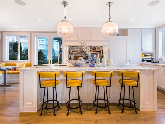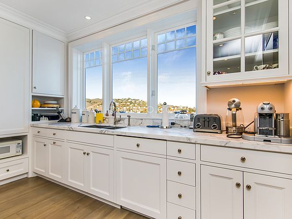 This exceptional Belvedere Tiburon residence spans four levels, with an abundance of windows providing breathtaking views from every floor. Multiple living and entertaining spaces throughout the home create the perfect settings to host a gathering, enjoy a dinner party, or simply relax and watch a movie in style. The massive chef s kitchen includes everything needed to prepare gourmet meals, complete with kitchenware, premium appliances, a large island with bar seating, and a charming breakfast nook. A full pantry keeps larger appliances neatly stored, and a separate laundry room with utility sink provides additional cabinetry and storage space.