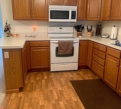 Move right in to this immaculate ranch condo! No steps - laundry is in the kitchen area, tons of cabinets & open to dining area. Spacious great room & 2 large bedrooms, master bath and guest bath. Enjoy the deck off the great room. Lots of storage closets. Double garage.