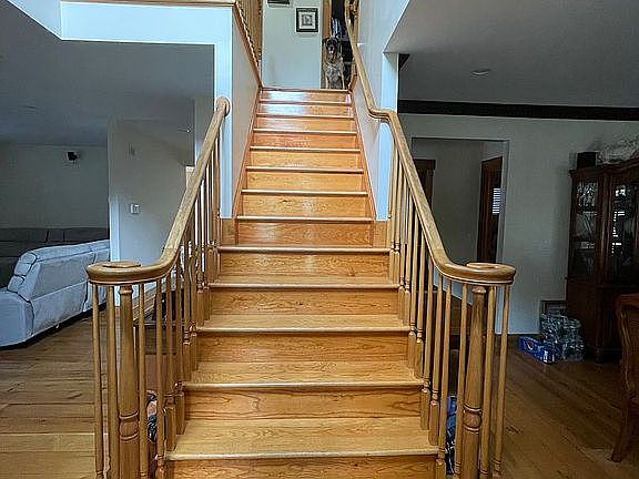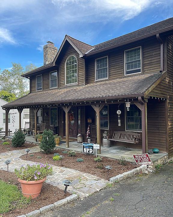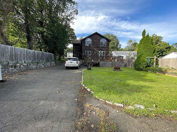 4 bedrooms/3 full baths - Custom home with wide plank oak flooring; cedar clapboard with cedar molding inside the house (windows and trim); full basement (unfinished) and attic storage; custom hardwood oak barn beam flooring throughout the house, central heat and air; natural gas heat; Anderson windows throughout the house; Hunter Douglas blinds (transfer w/house) Upstairs - 3 bedrooms and 2 full baths. Master bedroom is oversized with vaulted ceiling and western 24 foot red cedar beams; tumbled marble in master bath with oversized shower with seat and 6 body sprays, jacuzzi tub; walk in closet in master; 2nd upstairs bath recently remodeled with ming green tumbled marble tiles, double vanity sink as well as large shower with seat, separate laundry room w/washing machine, dryer (both replaced a year ago) and ironing station; Downstairs: 4th bedroom with tray ceiling which was recently painted also can be used as an office ; full bath downstairs with shower and jacuzzi tub. Living room with stone fireplace; 9 foot ceilings; dining room, extra large eat in kitchen with island, granite countertops; stainless steel appliances; lots of cabinet space; Sliding glass door leads to two decks (upper and lower). Framed unfinished basement ; One car Garage under house as well as additional detached 36 x 40 garage with brand new roof , a car enthusiast’s dream complete with wood stove, natural gas heat, electricity and running water (all utilities are underground) Lot size measures .37 acres plenty of room for trailers and RVs. You can easily park 6 cars or more in the driveway. Fence, fire pit and custom made garden boxes. TV in kitchen and master (also included) -- By appointment only/preapproval necessary for viewing. Call 203-223-3295