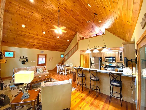This Rustic waterfront home is perched atop a light hill peek overlooking lake Hartwell with Blue Ridge Mountain views! Set back from the street over an acre, the wooded property offers ample parking areas for plenty of guests and water toys. The home offers a rustic yet contemporary design, a large open entertaining floor-plan, Screened in living and dining room, four bedrooms, 3 bathrooms, and a large bonus entertaining space. You will know you are at your next rustic lake retreat from the large open plan main room with the stately stone fireplace, maple wood flooring, and wall/ceiling paneling throughout. The main living room walks out to a screened-in living/dining area as well as the wraparound deck overlooking the wooded property and lake. With southern exposure you'll experience the sensational year-round sunsets as you relax after your day on the lake. Each of the bedrooms are quite spacious with large closets and ensuite bathrooms featuring slate stonework throughout and custom rustic craftsman cabinetry. As you walk to the lake you'll find a rustic fire pit before coming to the sand beach and large covered double slip boat dock on deep water. In addition to the incredible lake and mountain views, the southern exposure guarantees good sun all day and beautiful sunsets. Butternut Island is just a quick swim from your own double slip dock! - Please call or text Ryan @ (678) 373 9634 to schedule a tour of this Property!