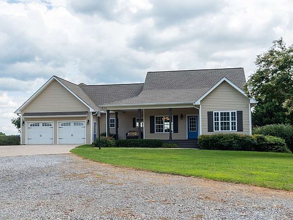 Stunning ranch style home, split bedroom plan, with finished walk-out basement which also has a full bath, bedroom, huge living room, workshop and massive storage room with built-in shelving. Kitchen has view to the great room's open concept living and dining areas. New covered deck with vaulted ceiling is the perfect place to enjoy a quiet moment or star gazing. House is surrounded by almost 12 acres of pasture with wooded buffer on three sides. Two ponds, one fully on the property and the other shared with a neighbor, are a great place for a picnic, fishing off the dock or paddle boating across the waters! This house features dual fuel HVAC system, gas log fireplace on Main and gas plumbing for a second fireplace on basement level. Impressive insulation qualities are proven by the lower than average utilities for a house this size. Public water but potential for other sources with the ponds and spring. Separate garden shed with electricity, built with reclaimed wood, has a covered front porch and door facing the garden spot and a larger side door for equipment accessibility. Long range, layered mountain views are a bonus!