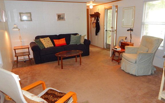Looking for inexpensive creek front home? You've found it! This 2001 manufactured home on a permanent foundation is the perfect place for getaways, or full time living. The back of the property follows along the large creek. There's also a branch along a side of the property as well. Good usable land for gardening or enjoying the outdoors. Split floor plan, large master bedroom with 2 closets, and large addition make this an exceptional deal! Fronts on state maintained road and in excellent condition. Comes furnished too!