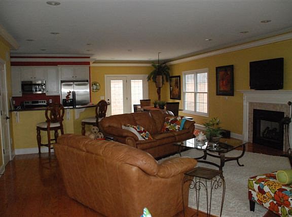 Beautiful lakefront home in this upscale gated community and features built in sound system w/surround sound inside & out, grill directly connected to natural gas line, custom indirect lighting in living/dining room, Trey ceilings, crown molding, granite counters, stainless appliances, ice machine, porches feature tile floors, fans, master bedroom w/master bath 6x6 walk-in closet located on ground level, garage has finished walls, boat slip with jet ski available, full service marina, club house w/pool/hot tub, full kitchen, fitness, beach area w/pier, great summer getaway or full time home.