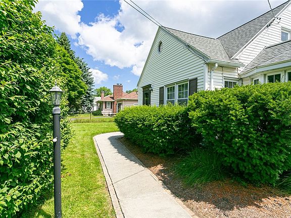 This home is steps away from several popular restaurants, a major shopping center & a well-known coffee shop. Easy access to 390 makes commuting a breeze! Desirable features include updated windows, a park-like backyard, vinyl floors throughout, and a 2-car attached garage. Enjoy two beds and a full bath on BOTH the first AND second floors! Beautiful built-in shelving in the dining & living rooms offer storage and display space. The roof was replaced in 2013 and comes with a lifetime warranty. Additionally, the furnace has had annual maintenance. Privacy, Convenience and Charm all in one! Showings begin Wednesday 7/24. Delayed Negotiations on Monday 7/29 at 12:00 noon.