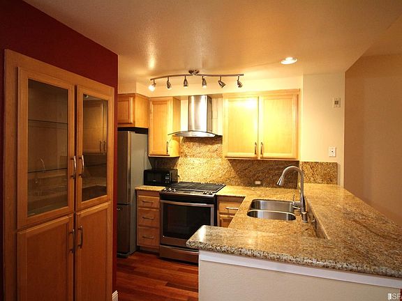 Excellent location and beautiful remodeled one bedroom condo. Its a very peaceful back end building with high-end finishes to accentuate the generous space. It features 728 square foot home, with high ceilings and bay window overlooking pretty greenery and good size balcony and closet with views. It also has beautiful wood flooring, in-unit laundry, fireplace, upgraded kitchen with stainless steel appliances and gas stove. Underground garage includes one space. Gated community which includes pool, clubhouse and more..
