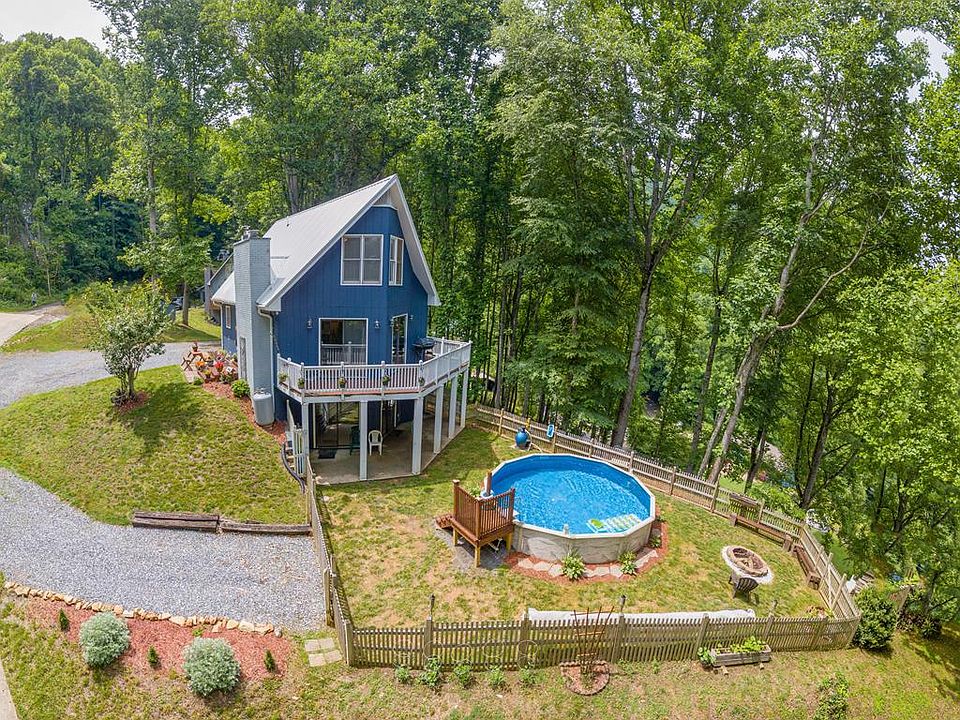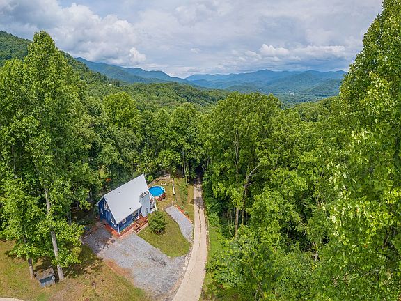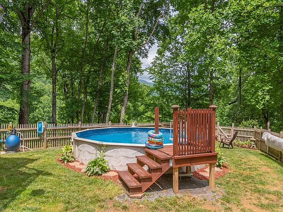 Over the river and through the woods is this enchanting A-frame updated and ready to capture your heart. Located only 10 min to Main St Sylva and 20 min to Waynesville, this central location is perfect for a primary residence, second home or could be used as a successful vacation rental. The roof is only a year old and the home is freshly painted. The Blue Ridge Mountain views are beautiful and could be improved with trimming. Inside you will find real wood floors, updated kitchen, gorgeous stone fireplace. Land below home lends itself to accommodating an additional structure such as garage/outbuilding. Beautiful above ground pool conveys. Home getting all new windows and doors.