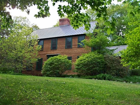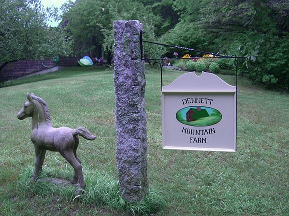 Dennett Mountain Farm. A charming country retreat, 3 bedroom, 2 bath, dining room with fireplace, living room with fireplace, and library in an authentic reproduction saltbox, with southerly views, set on 16.5 acres at the end of a private country road. Ideal for animals with a 4 stall horse barn, a post-and-beam run-in shed, a full size riding ring, fenced paddocks, and access to miles of riding and hiking trails. Beautifully landscaped, with patios, numerous gardens and granite stonework. A small private pond is overlooked by a post and beam screen house and a wood fired sauna. Detached 1 car garage/shop with nicely appointed, one bedroom, 1,000 square foot apartment. The home has been professionally repainted throughout, and has wide pine floors, custom paneled walls, and fireplaces in both the dining and living rooms. A unique property offering privacy in a classic country setting. This property shows as off market in Zillow, but is on market and for sale.