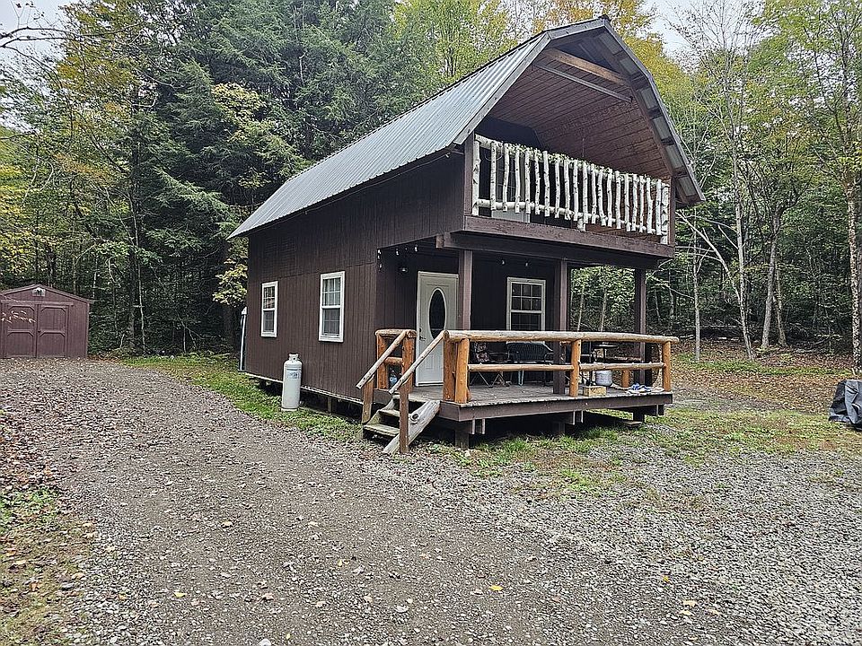 A beautiful newly built recreational cabin. Sits on 5.1 acres and borders 7,000 acres of state land. 8x8 hunting shanty also on the property. The cabin is 16×32 and is a two story building. The upstairs is a large bedroom with a porch off of the bedroom. The downstairs has a kitchen, and living room. Spray foam insulated. Easy to heat.