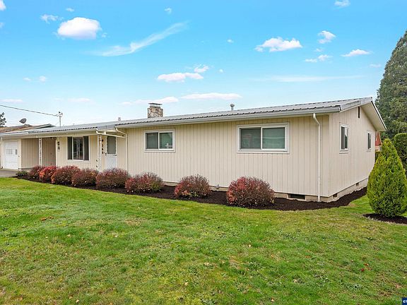 Corner lot in a quiet neighborhood, 3 bedroom, 2.5 bath, single level home w/ 2034 sqft, living room w/ wood burning fireplace, dining area open to a remodeled kitchen, triple pane windows. Potential for dual living, additional living room, w/ a kitchenette off the living room, newer free standing gas stove, plus a single car garage that has been converted to storage. Carport for parking. Covered patio area, private backyard and workstation area and wood storage. Oversized lot and room for RV parking.