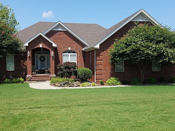A spacious 3-bedroom, 2 1/2-bathroom, brick home rests on a large 100 X 183 lot in the quiet and quaint Butterfly Meadows subdivision in Tuscumbia, Alabama. Its location is south of Highway 72, on the easterly edge of town, just outside the city limits. Originally built in 1999, living space is just shy of 2,000 square feet. Most rooms and doors have been freshly painted for you. All bedrooms, closets, living room, dining room, entryway and hallways have solid oak hardwood. Kitchen and breakfast nook have porcelain tile floors. Kitchen has Granite countertops, Dishwasher,garbage disposal, oven, microwave, refrigerator. Breakfast nook, formal dining room, laundry room, master bath with walk-in shower. Large walk-in closets. Two extra rooms are split with a bathroom in between. Spacious and easily accessible attic space, with plywood flooring and lots of storage space. Ceiling fans in living room, bedrooms, and master bathroom. Double pane windows, gas fireplace, and vaulted ceilings and crown molding in several rooms. Convenient storage building. Two mature blueberry bushes. Well-maintained lawn, deck out back door, fenced in yard (entirely repaired a year ago), up-to-date termite bond. New beautiful roof, January 2017.