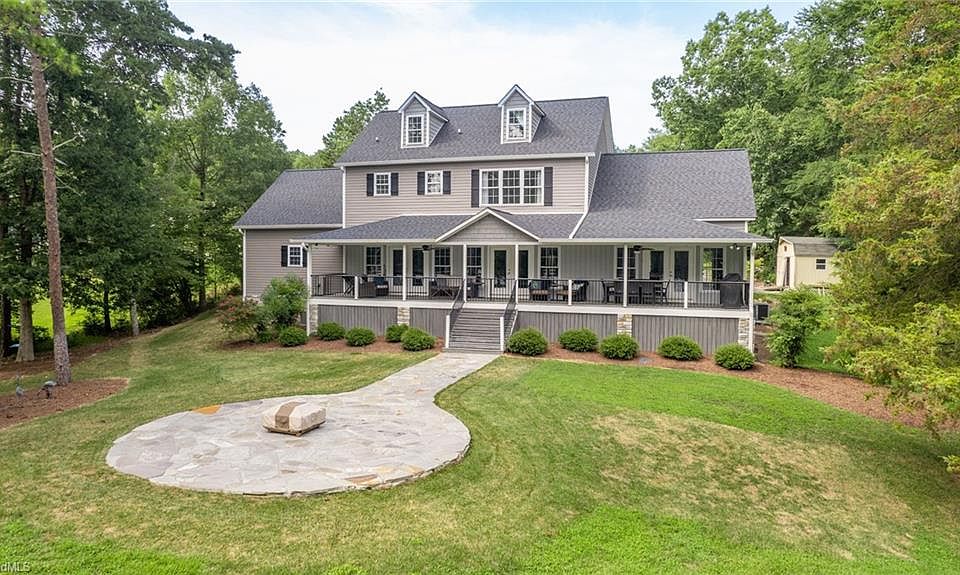 Looking for the perfect lot on the northern side of Hyco lake w/flat access to the lake, THIS IS IT! 3 story house allows for lots of fun to be had with family and friends. First level has large living/dining area, kitchen, breakfast nook, laundry & primary bedroom, bath and WIC. Kitchen features breakfast bar, coffee bar, SS appliances & granite w/tile back splash. 2nd floor features bedroom w/full bath, office & loft. Third floor 2 rooms & full bath w/shower. The large private covered porch overlooking a patio with full lake views makes this the perfect lake retreat! Attached 2 car garage. Boat House w/storage closet, covered area, boat storage & dock, the perfect place to catch the big one. FULLY Furnished, Washer, Dryer & Refrigerator conveys. Irrigation System.