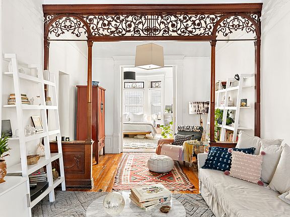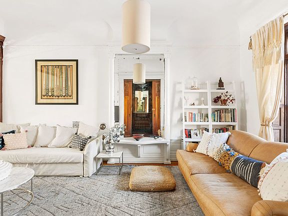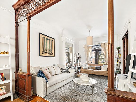 Dreamy triple-parlor, four-story, three-family Brownstone with abundant original architectural detail -- located in prime Stuyvesant Heights just steps from the express A/C train at Stuyvesant Ave. Designed in 1894 by the eminent Magnus Dalander, 260 Decatur Street is part of an exceptionally handsome row of 25 townhomes built in the Romanesque Revival tradition and incorporating elements from the incoming Renaissance Revival style. This stretch of Stuyvesant Heights is considered one of its best, and walking home down this lovely street will always be a source of joy. Measuring 20-feet wide, and comprised of nearly 4000 gross square feet, 260 Decatur Street is currently configured as two floor-through apartments above a lower duplex offering you the flexibility and inspiration to create a grand single-family home, or enjoy sustained rental income as is. The historic treasure trove of architectural detail is foretold in the front hall with its floor-to-ceiling oak paneling with garland detailing, built-in hall mirror with original brass hardware, and an arched framework gem with original stained glass, ornately carved screening and built-in bench. We can't imagine a lovelier place to hang your hat. The bright and spacious front parlor welcomes you with a columned, floor-to-ceiling pier mirror reflecting the front foyer through the carved wood pocket doors. A stained glass transom crowns the double bay window to the north. Simple but unique curved ceilings offset the pilastered molding and knee-high baseboard paneling. Ornately-carved fretwork with columns, arches and a musical centerpiece leads into the center parlor. Traditionally, the front and center parlors were used for receiving guests while the rear parlor was reserved for private family activities. This jewel-box of a room, the rear parlor, is radiantly sunlit from its south-facing triple-bay window, once again crowned with original stained glass. The columned, mirrored mantle vies for attention with original built-in wall cabinetry across the room. Paneled doors, knee-high paneled wainscoting and inlaid floors complete this picture of elegance. The garden level is the lower floor of the duplex with an original mantle, inlaid floors and paneled wainscoting in the gracious front dining room. The rear kitchen has been updated but retains a charming wall of built-in cabinetry transporting us right back to a turn-of-the-century country kitchen. The top two stories are each floor-though apartments with 1 bedroom per, spacious living rooms, and functional kitchens and baths; there is a decorative fireplace mantle in each of the four main rooms. In the middle floor, the pass-through closets are the most intact with paneled walls and ceilings, fretwork, built-in cabinetry and pocket doors. Decorative plaster relief adorn the ceiling and walls and a window seat in the protruding bay offers the perfect spot to relax and admire the historic landmarked view. There is also a protruding bay window in the top floor and gorgeous built-ins in the pass-through dressing areas, as well as parquetry inlaid floors. The architectural stats are remarkable: three sets of protruding bay windows; six fireplace mantles; one pier mirror; two walls of built-in cabinetry; four mostly intact pass-through dressing areas with original built-ins; original shutters; original inlaid floors; curved ceilings; stained glass; seven sets of pocket doors; fretwork and more... it's all here. The mechanical systems have been upgraded over the years. Primely located in the original Stuyvesant Heights Historic District, 260 Decatur Street is minutes away from the express A/C train. The best of Bed Stuy's dining scene and shopping is at your fingertips: Mama Fox, Saraghina, Peaches, L'Antagoniste, Milk & Pull, Chez Oskar Nana Ramen, Trad Room, Zaca Café and more; enjoy world-class jazz at Bar LunAtico and shop at Sarghina Bakery, Bed-Vyne, Manny's Wine Shop and Halsey Traders.