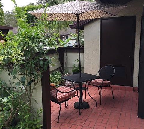 REDUCED for quick sale! Whole house water purification system . This is the three-bedroom convertible model, where a wall could be easily installed for the third bedroom. The kitchen has been updated with new cabinets, stainless appliances and granite countertops. Decorative plantation shutter-looking closet doors in laundry and foyer area. Ceramic tile and laminate flooring throughout (except master bedroom). Both baths have also been updated. Master bath has extra storage cabinets above the sink area and the guest bath has a beautiful oversized glass block shower. Front/rear gutters, Accordion Hurricane Shutters tested and approved, Roll-down Security Shutters on enclosed porch. Development has 2 swimming pools and updated clubhouse!