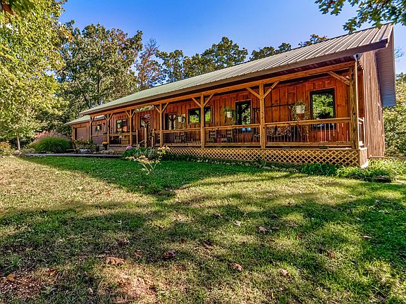 Deer, turkey, and squirrels, OH MY! If you've been looking for the perfect property that allows you to live off the land and enjoy Ozarks scenery, you've come to the right place! This home was built to last, with 21 RF insulated walls and 40 RF insulated ceilings. When you drive down the gravel road, you will turn into the beautiful property and notice the circle drive, mature trees, shop, horse barn, greenhouse, pool, and more! The shop has central HVAC, a kitchen, and bathroom that was used by the owners while building their home, it could easily be converted back to living quarters if needed! This home has so many unique features. The rock counter tops and fire place were hand crafted with rocks from the property itself, not to mention the hand cut pine flooring - truly one of a kind! Upstairs you will find the living room with windows that showcase the breathtaking view, kitchen, sun room, office, master, laundry, and half bath. Downstairs you will find an additional living area, bar, 3 bedrooms, and a second full bath. Some of the owner's favorite things about this property are the privacy and seclusion, stunning front porch, living room windows, wood burning fire place, and the beautiful views! Call to schedule a showing today, you don't want to miss this stunning property!