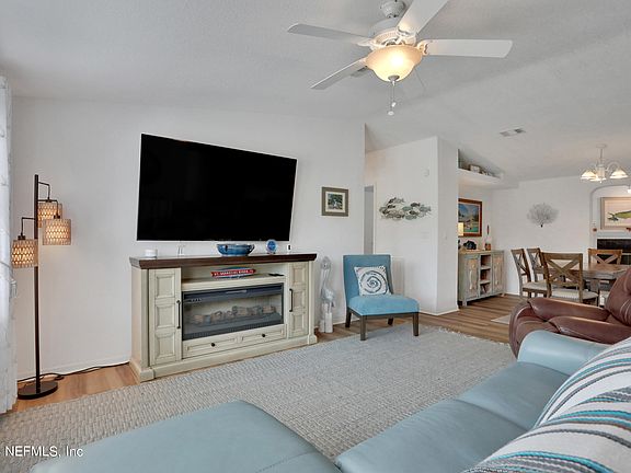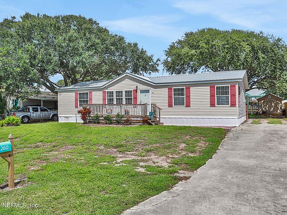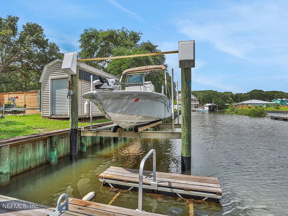Island living never felt this good. Welcome home to Treasure Beach, your waterfront living community. Situated on 75 feet of prime canal frontage sits 260 Desoto Road in beautiful St Augustine, FL. This 1720 sq ft, 3 bedrooms, 2 bath, well-appointed home boasts cathedral ceilings with an open floor plan that is great for entertaining your family or guest's. The large primary suite features tons of windows to bring in all the Florida sunshine and a large primary bath with walk in shower and garden tub. The formal living room features a real wood burning fireplace overlooking your backyard oasis. Three large decks give you plenty of options for grilling or relaxing in the beautiful Florida weather. The large live oak trees on the property give it that formal Southern charm. The backyard features two storage sheds, a newly installed 12,000lb boat lift motors, newer bulk head and floating dock, giving you easy access to the intracoastal waterway leading to the Atlantic Ocean. If putting your toes in the sand is more your speed, the Treasure Beach community offers a private boardwalk and beach access to the world class Crescent Beach. The newly installed crosswalk makes for easy and safe access. This home is perfect for a full time residence or short-term rental, bringing in additional passive income for years to come. Within close proximity to downtown St Augustine and world-class dining and entertainment, this home is perfect for all your wants and needs. Come see what others have been talking about; come live the Florida lifestyle