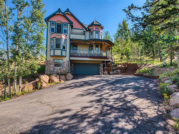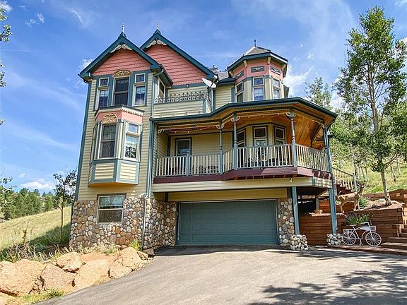 Designed and Built by a Custom Victorian Home Builder in 1999. Modern home with the craftsmanship of yesteryear! This absolutely stunning and unique property is truly one-of-a-kind. Stained Glass, Turrets, Impeccable, Shabby Chic lighting & detailed woodwork throughout. Perched on a one-acre, nicely wooded lot overlooking the 35-acre Burgess Lake. Wrap around deck. The possibilities are endless; primary residence, second home, vacation rental or B&B. The main floor features a great room with high ceilings, authentic hardwood floors, gas fireplace, built-in entertainment cabinet, and space for a reading spot near the bay windows. The massive kitchen has custom, maple cabinetry with distressing, stainless appliances, and a 6-burner gas commercial range with double ovens and hood. Room for numerous cooks and entertaining! Perfect space for an eat-in kitchen or breakfast nook. Additional bonus room through french doors, currently being used as a formal dining room. Laundry room and half-bath also on the main floor. Upstairs you'll find a huge master bedroom and adjoining master bathroom. Windows overlooking the lake, a private deck to enjoy your morning coffee or evening wine, jetted bathtub located in the upper level turret, steam shower, walk-in closet and gas fireplace. The master ceiling has been painted by an artist (flown in from NY) to look like the stars & the moon at night. Two secondary bedrooms and a full bathroom. The lower level has an unfinished storage/utility room and finished bonus room, perfect for a home office or additional non-confirming, garden level bedroom. Spring Valley residents can enjoy all that Colorado offers with year-round fishing in the 4 fully-stocked lakes/ponds, ice-skating and 100 of miles of OHV and hiking trails in Pike National Forest, less than 2 miles from the property. Canoeing, Kayaking and Small Troll Motors are permitted. Must see to understand and appreciate it's beauty.