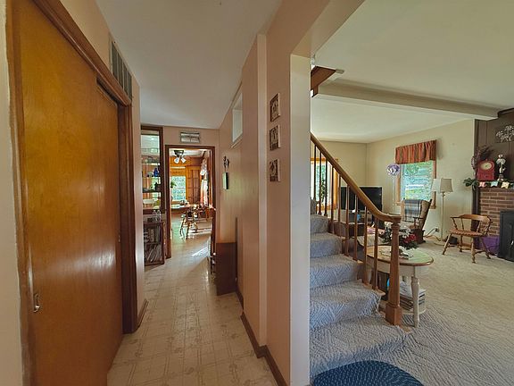 Lovely three bedroom home that is move in ready and has been miraculously maintained throughout the years. Located close to schools and not far from downtown. Beautifully landscaped oversized lot with fruit trees and 3 separate patio areas To sit outside and enjoy your free time. The main level offers a full bath, Primary bedroom, Eat in kitchen, spacious living room and a 3 seasons porch. Upstairs are 2 additional bedrooms and a 1/2 bath. Some updates (dates per seller) include; siding and doors 2008, gutters with leaf guard system 2009, New garage 2015, Enclosed porch making 3 seasons room 2009, windows 2005, furnace and ac unit 2020 and water heater 2022. Basement can be easily transformed into additional living space. 48 hours notice for binding acceptance.