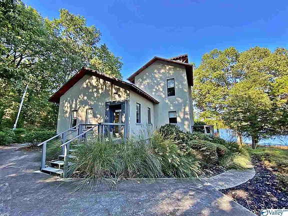 Truly Custom Lake Home with lots of unique architecture to appreciate. You don't see them like this everyday! Tucked away at Mink Creek, this lake home is situated on a level lot with 100+/-ft of waterfrontage, 1 Slip Boat House, 4+/-ft water depth, and an awesome view! Inside the home features tall, smooth ceilings, hardwood floors, lots of windows to show off the lake view, 2 master suites, a bonus loft with sleeping area. Take the stairs up to the private Eagle's Nest and drink the morning coffee with a tree top view of Lake Guntersville!